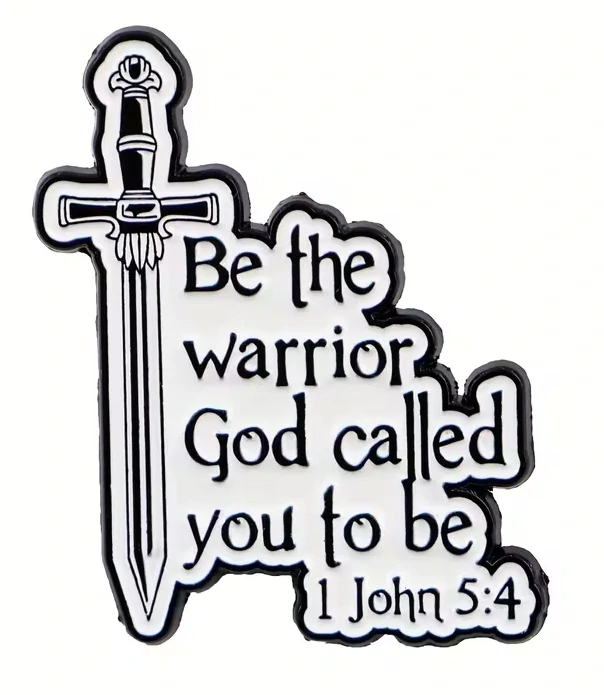 Křesťanská brož ( smaltovaný odznak ) s biblickým textem v angličtině 1 Janova 5:4