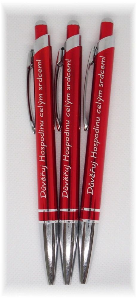 Kovové pero - Důvěřuj Hospodinu celým srdcem! s modrou velkokapacitní náplní.