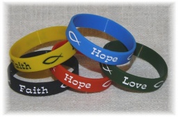 Silikonový náramek Faith - Hope - Love (víra - naděje - láska). Velikost 170mm (dětská velikost).
