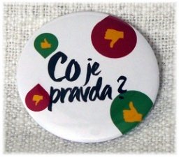 Placka 25mm - Co je pravda? - bíláSkladem 95 ks11 Kč/ ks
