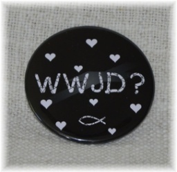 Placka 50mm - WWJD? + srdceSkladem 99 ks18 Kč/ ks