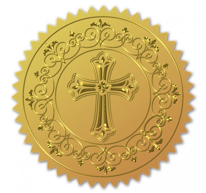 Samolepicí mosazná pečeť - Kříž, arch/4 ks