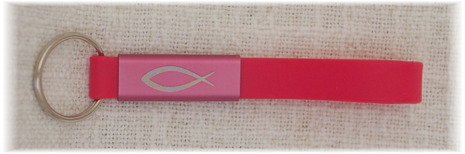 Silikonová klíčenka s plíškem a gravírovanou rybičkou.